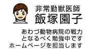 大阪府出身。獣医師・獣医学博士 日本獣医循環器学会に在籍 愛猫のマンチカンのココアも先天性心疾患です。 趣味は、お家の掃除とダイビング、音楽鑑賞です。 1998 日本獣医畜産大学 卒業 2002 麻布大学 博士課程修了 テーマ ”犬の動脈管開存症に対するコイル塞栓術に関する実験的・臨床的研究” ー適応基準の作成と溶血発現要因の検討ー 東京の昭島動物病院にて2年間研修 2004 あわづ動物病院を開院 2005 獣医循環器認定医 取得